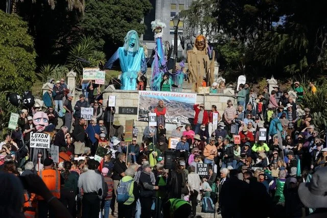 the Government’s Fast-Track Approvals Bill. The bill enables the Government to bypass the Te Waikoropupū Water Conservation Order which protects the springs. This bypassing will allow what is essentially an arsenic mine at Sam’s Creek in Golden Bay. The arsenic-filled rock will be processed in the Upper Takaka Valley. The rock will be crushed to fine powder and then passed through a chemical mix which includes cyanide to extract the gold.